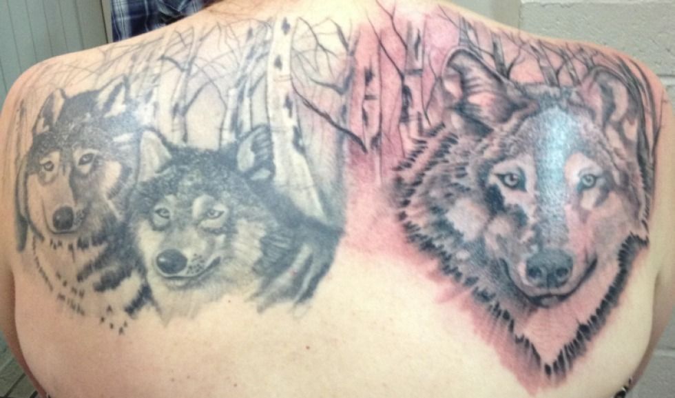 Use of contrast and layering to mask old tattoos