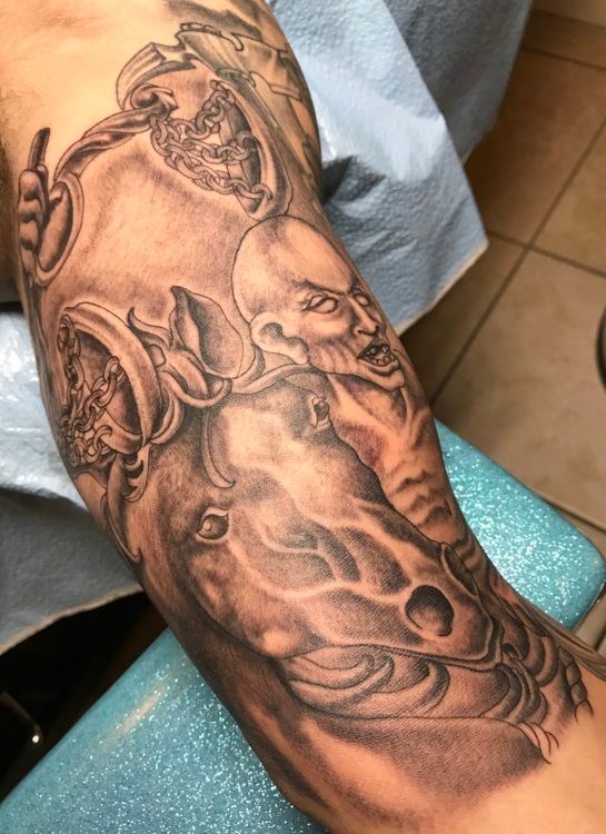 With over 31 years of tattoo experience, Brent "Taggurr" Roman has developed a signature approach to sleeves: start with the vision, plan the layout, and build each piece with precision and purpose.
